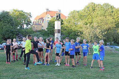 Napoleon "studsade" fram, inspirerade och instruerade våra 23 ungdomar födda 05/06/07 till studsigare, rörligare och mer avslappnad löpning.
